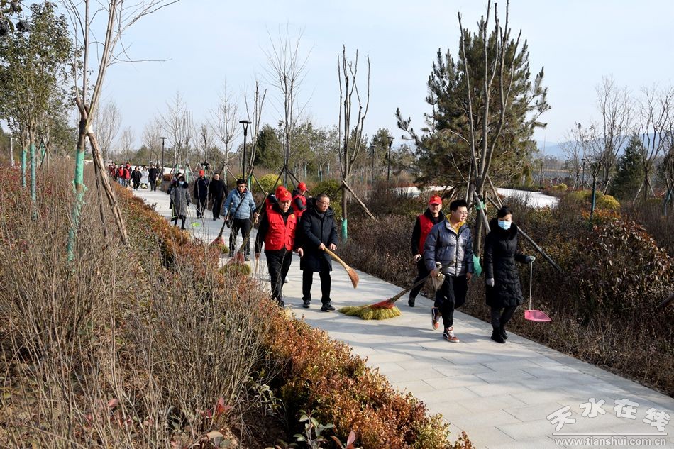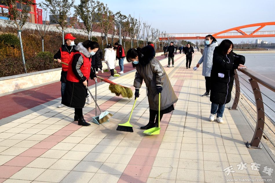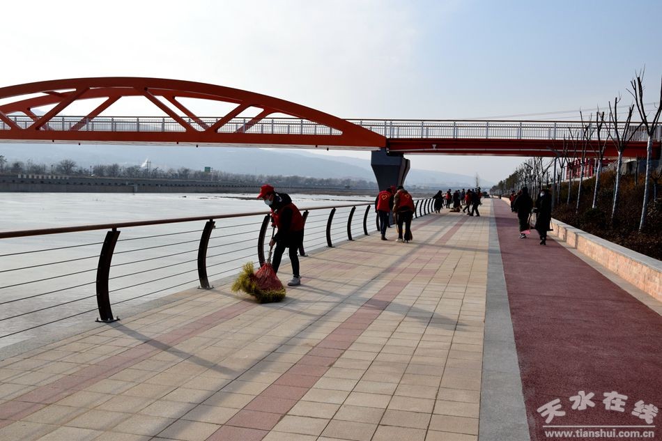 2020年12月31日,新年來臨之際,天水市城投公司黨委以“迎新年、促發(fā)展”為活動主題,展開環(huán)衛(wèi)清掃志愿服務活動。公司組織黨、團員30余人,配合保潔人員,對開放后的藉河二期風情線3號濕地段進行環(huán)衛(wèi)清掃志愿者活動,公司在家黨委成員帶頭參加,黨團員積極響應、踴躍參與。
